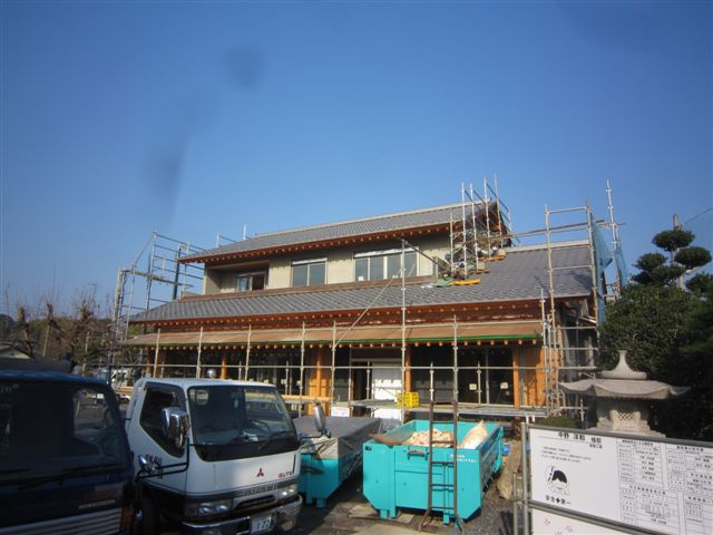 市内の嘉家佐和で施工させて頂いているN様邸 外部の下屋が終り 塗り壁の……