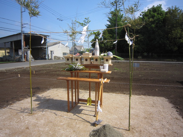晴天の今日、筑西市二木成でA様邸の地鎮祭に参加させて頂きました。 ジリ……