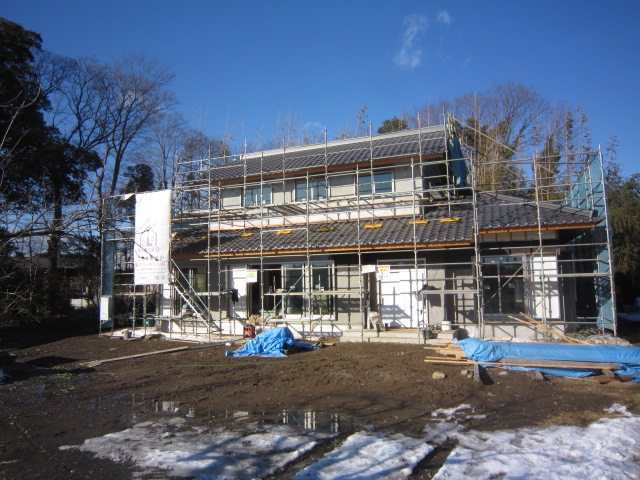真壁のT 様邸の所に行く途中 まだ道路に雪が残っていました。 ……