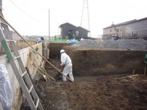 つくば市 K 様邸 基礎工事中のK 様邸 高低差の関係でベタ基礎を大……
