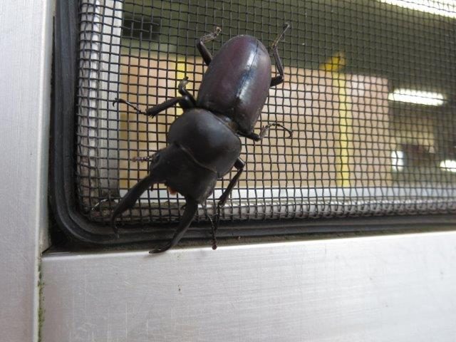 朝 事務所の窓を見ると 昨夜の事務所の明りに誘われたのか クワガタが来てい……