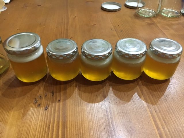 先日 搾った日本ミツバチの蜜を 瓶に詰めてみました 貴重な蜂蜜・・・・……