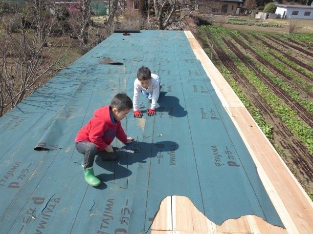 マラソン大会終了後 帰宅 早速 小屋の作業に入りました 子供……