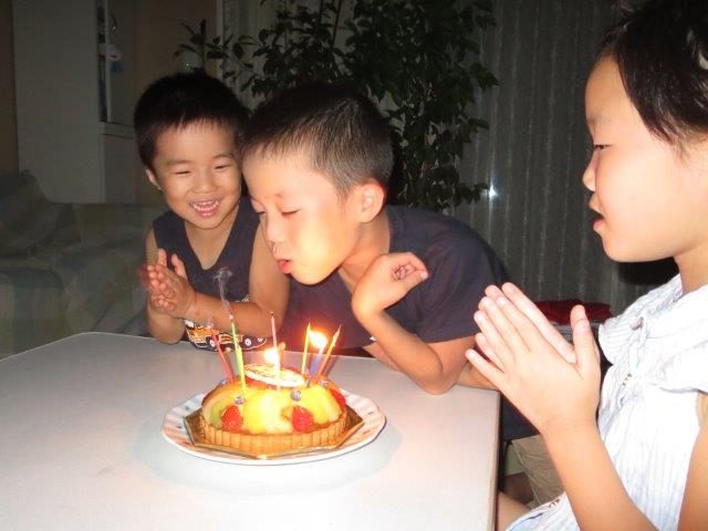 一番下の子供の誕生日 1日遅れてバーちゃんがケーキを準備してくれました ……
