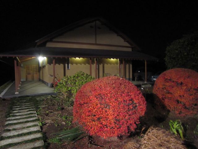 夜 自宅と実家の間にある植木が ライトアップされて驚くほ……