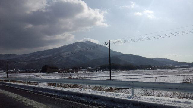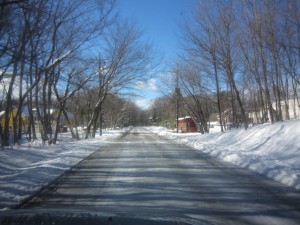 真壁のT 様邸の所に行く途中 まだ道路に雪が残っていました。 ……