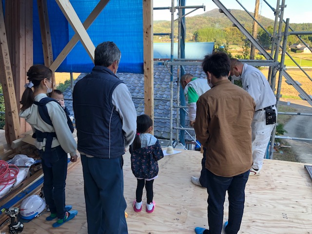昨夜からの雨に心配していた上棟式 数日前に建て方を行ったお陰でシー……
