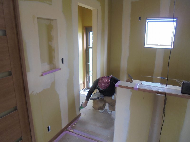 大工さんの木工事がほぼ完了して塗装工事が入り いよいよ内装工事に入らせて頂……