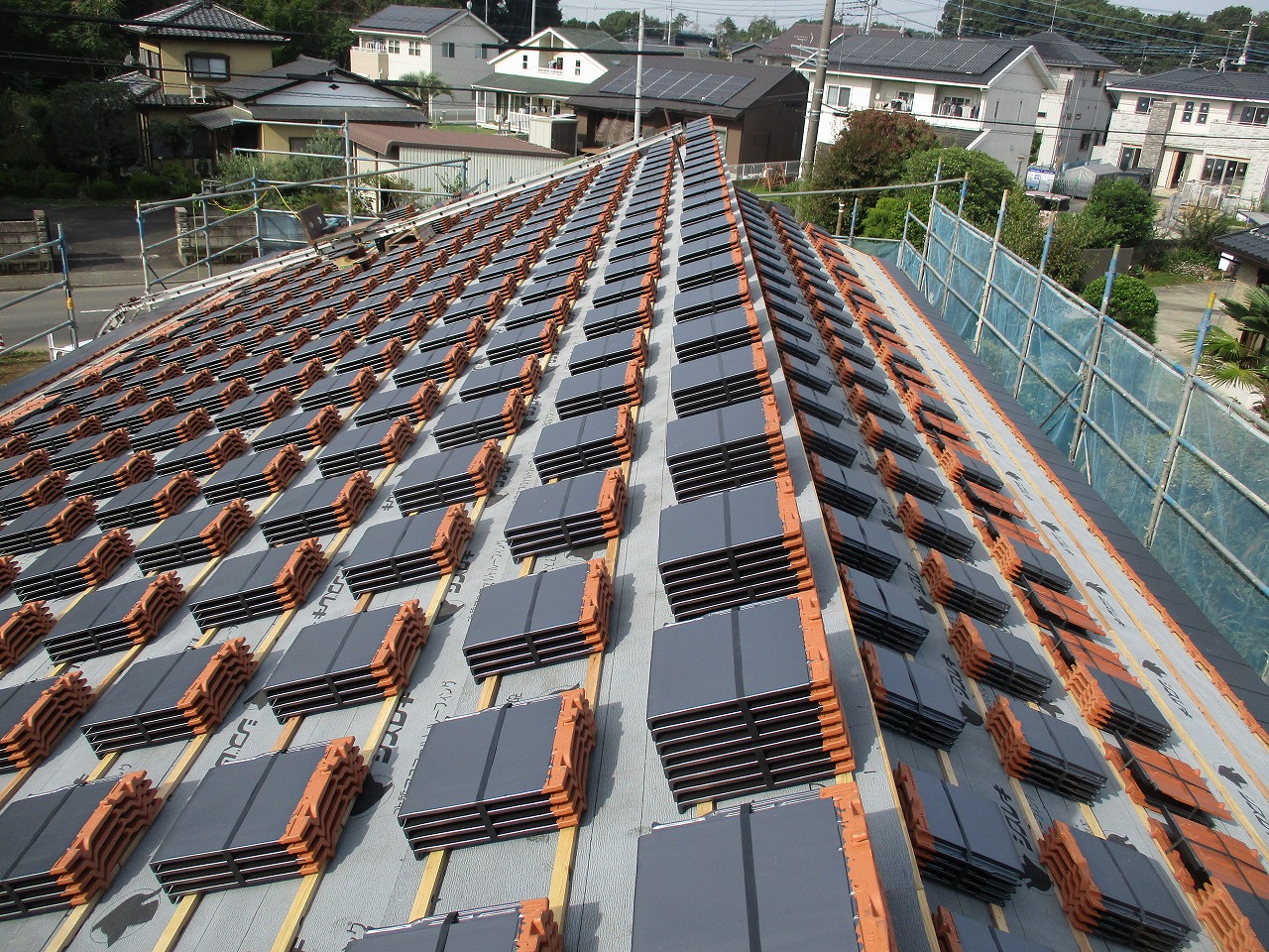 市内で新築施工中のW様邸 瓦上げを行いました 天気が……